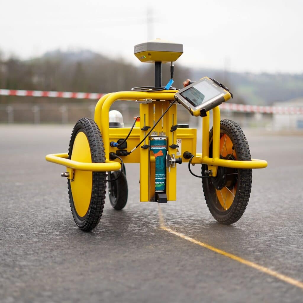 With the TinySurveyor Terra, we’ve developed a smarter, safer, and more efficient solution. Our robot autonomously paints points and lines with up to 2 cm accuracy, guided by GPS or total station systems. It’s compatible with most leading survey setups and is built to handle tough site conditions.